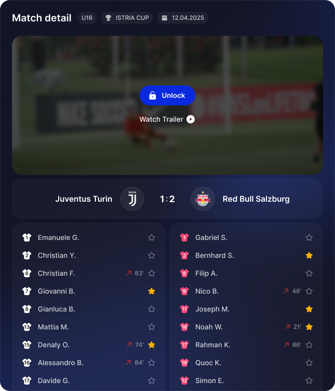 Match footage, team lineups, and player data - all in one organized platform for your scouting department.